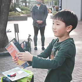 リスク性向に関しては、事前に注文の受け方や代金・商品の受け渡しの練習をするなど、やったことがないことに慣れておく機会を設けています。また自分で商品を宣伝するポスターを作り、「いらっしゃいませ」だけに留まらないお客様への宣伝文句を考え、声かけの練習をします。これらの練習は子供と大学生がペアとなって実施し、大学生は手本を見せ、アドバイスをし、子供たちを勇気づけます。最初は戸惑いを見せて小さな声しか出せない子供たちも、ひとたび商品が売れてお金を受け取ったり、遠くからお客さんが興味を持ってきてくれたりするのを見ると、急に大きな声が出るようになり、急に自信がついた姿を頼もしく思いました。自分の声でお客様の関心を引き、実際に商品が売れて代金の硬貨や紙幣を受け取ると、自分の力でお金を稼いだという感覚が生まれ、自然と笑顔がこぼれます。お客様に「ありがとうございました」といい、お客様からもお礼を言われると、がぜんやる気が出ていました。先駆けて行動した子供を見た他の子供たちも影響を受けて真似をし、連鎖反応が生まれているのです。子供のころからリスクをとることについて姜教授は「失敗してもたいしたことがないということを若いうちから体験し、意識できることが大切だ」と述べています。本プログラムを通して、最初は怖いと思っていても、徐々に心を開いてチャレンジしていく姿勢が見られ、一緒に取り組む大学生も刺激を受けていました。
